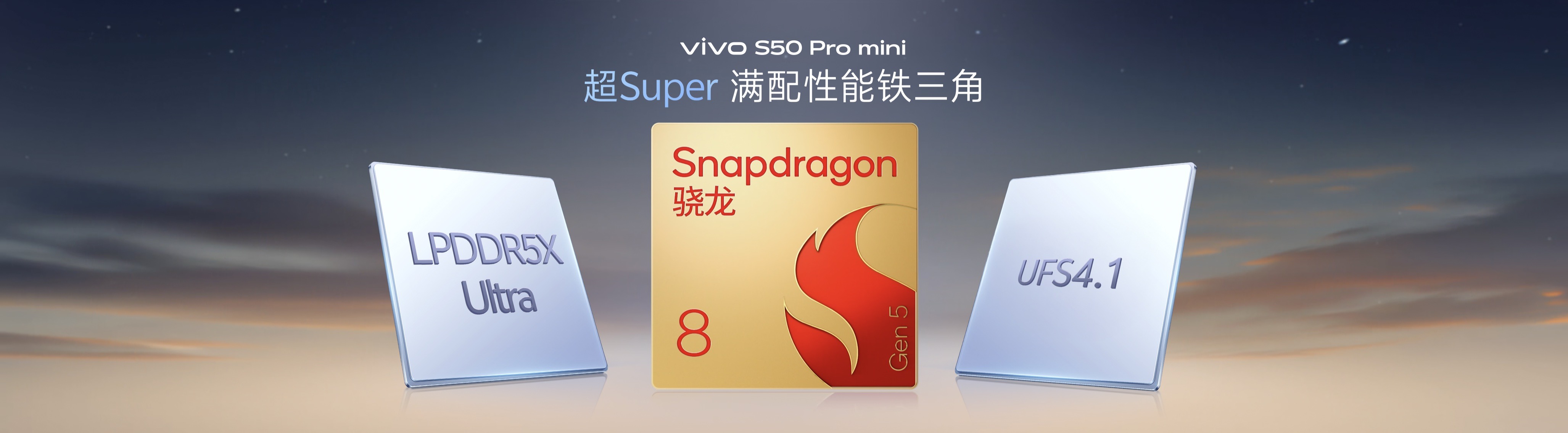 性能方面,vivo S50系列延续 S 系列“不做妥协”的思路,将旗舰级配置带给更多用户。vivo S50系列全新搭载高通骁龙8系旗舰芯片,vivo S50 Pro mini 更是首批搭载第五代骁龙 8 旗舰芯片,配合至 LPDDR5X Ultra + UFS 4.1的满配性能铁三角组合,实现了安兔兔跑分超 330 万,为重度手游用户和多任务用户提供更持久、更稳定的旗舰性能体验。