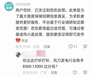 企业8500-1万招人,BOSS直聘以薪资过高限制发布,BOSS直聘称保障薪资信息真实