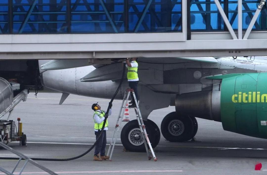 印尼雅加达苏卡诺哈达国际机场地勤人员为飞机加油。亚洲一些机场开始限制航空燃油供应,航空公司被迫自带燃油飞往目的地或削减航班。彭博社