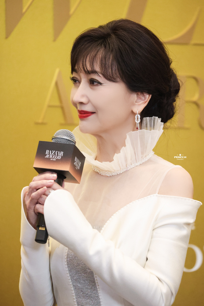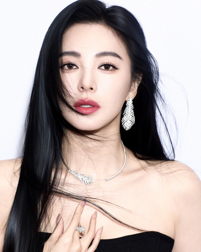 没错!又是她最擅长的“冷艳御姐”路线,周大福翡翠珠宝配宝格丽DIVAS' DREAM系列,珠宝是真闪,但造型真的没啥新意。