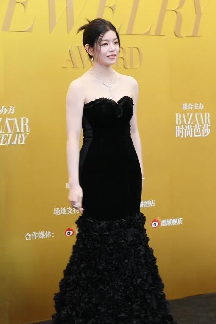 张予曦红毯上这套黑色深V闪钻长裙,看着是不是挺眼熟?