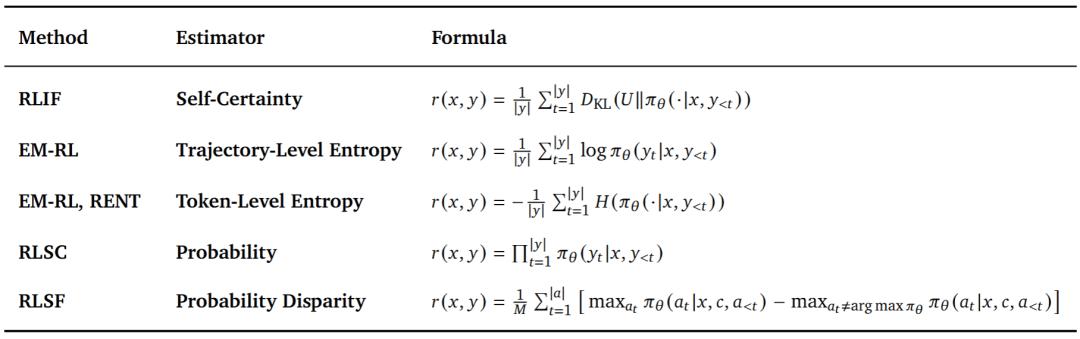 研究者将这些方法根据奖励的来源归纳为两类:一类基于 certainty,直接取模型在推理轨迹上的置信度指标作为奖励;另一类基于 ensemble,用多次 rollout 后的集成结果(如多数投票)来锚定正确。