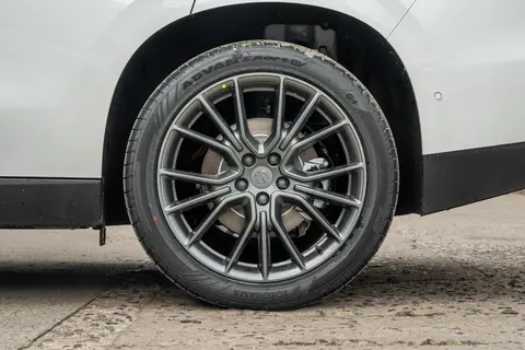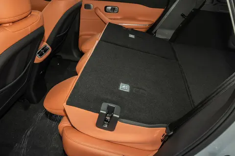 前脸的封闭式格栅搭配两侧的导流槽,不只是为了好看,还能起到减少风阻的作用,对续航也有帮助,这种 “颜值与实用并存” 的设计,确实很对家庭用户的胃口。转到车身侧面,流畅的线条从车头延伸到车尾,让整车看起来更修长大气。20 英寸的枪灰色多辐轮圈很有质感,既时尚又带点力量感,不会像小轮毂那样显得没精神。