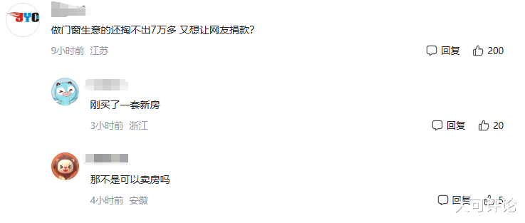 这是上了新闻,结果有网友这样评论:做门窗生意的还掏不出7万多 又想让网友捐款?
