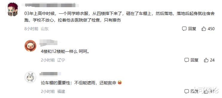 有网友分享自己曾经历的从楼上有人摔下来的经历。