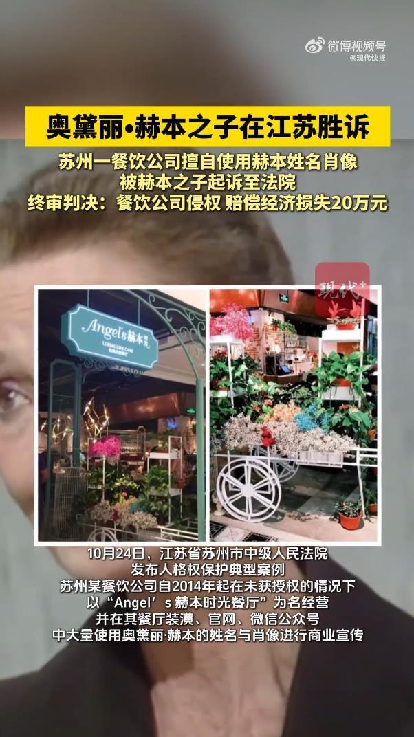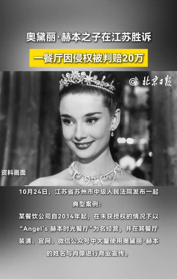 最近奥黛丽・赫本的二儿子卢卡・多蒂在苏州打赢官司的事儿,直接冲上了热搜,评论区里全是讨论的声音。一家叫 “Angel’s 赫本时光” 的餐厅,没经过允许就用了赫本的名字和肖像蹭热度,最终被法院判了侵权。