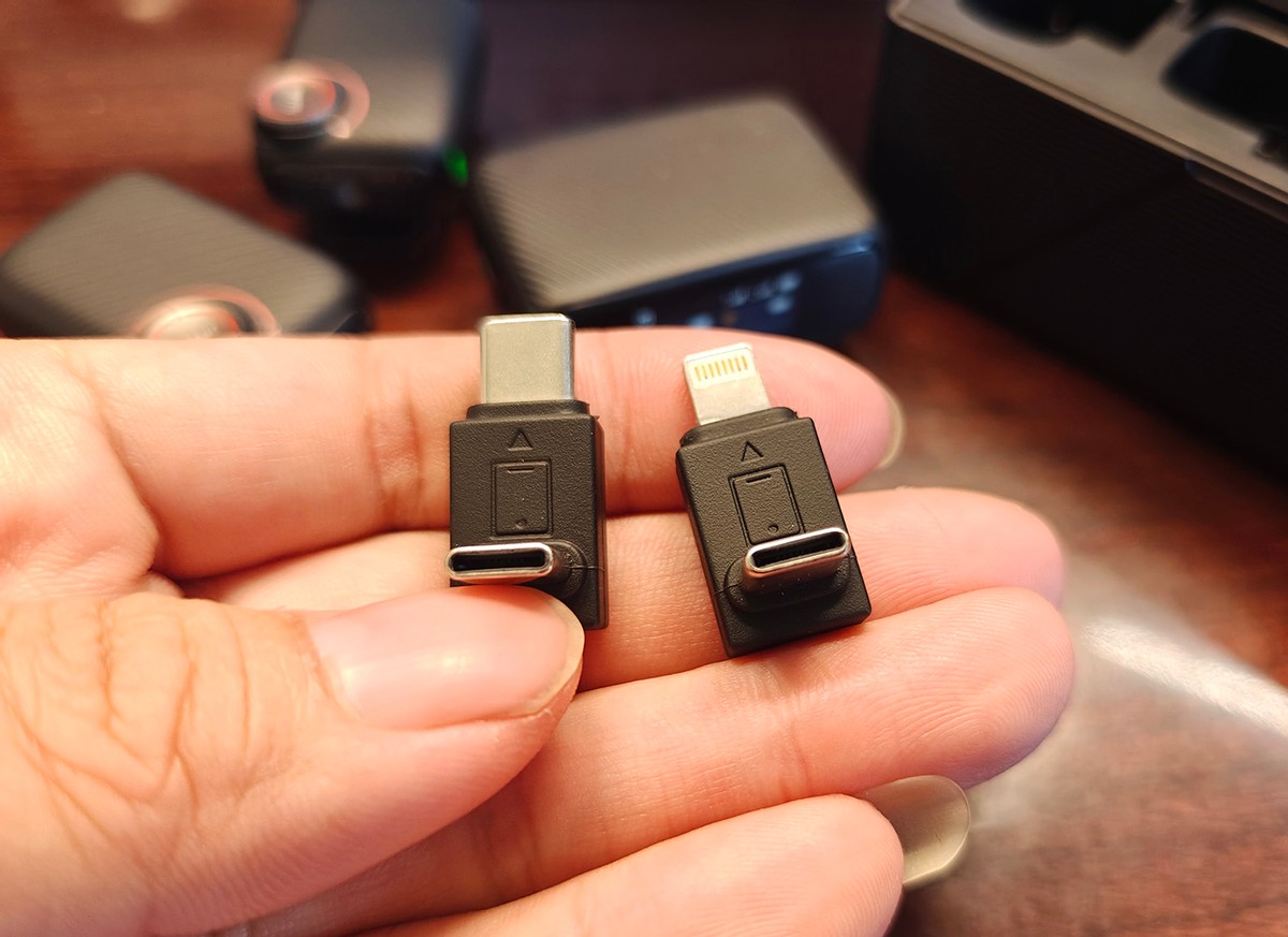 充电盒里还有两个小玩意,其实是两个转接头,一个是安卓手机的,另一个是苹果手机的。