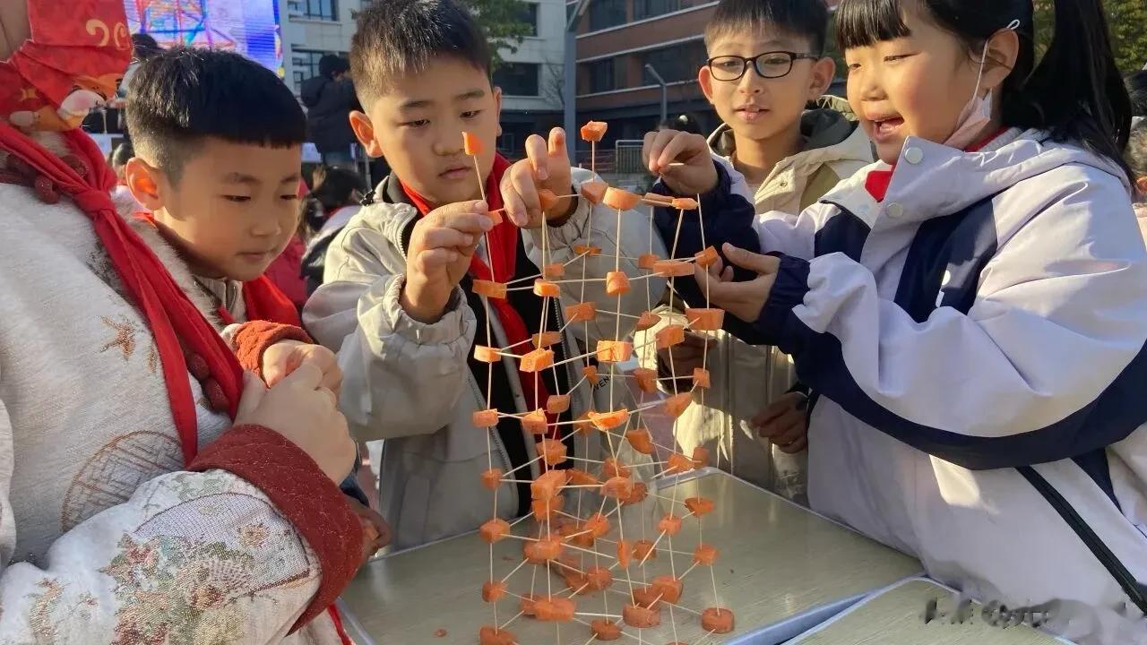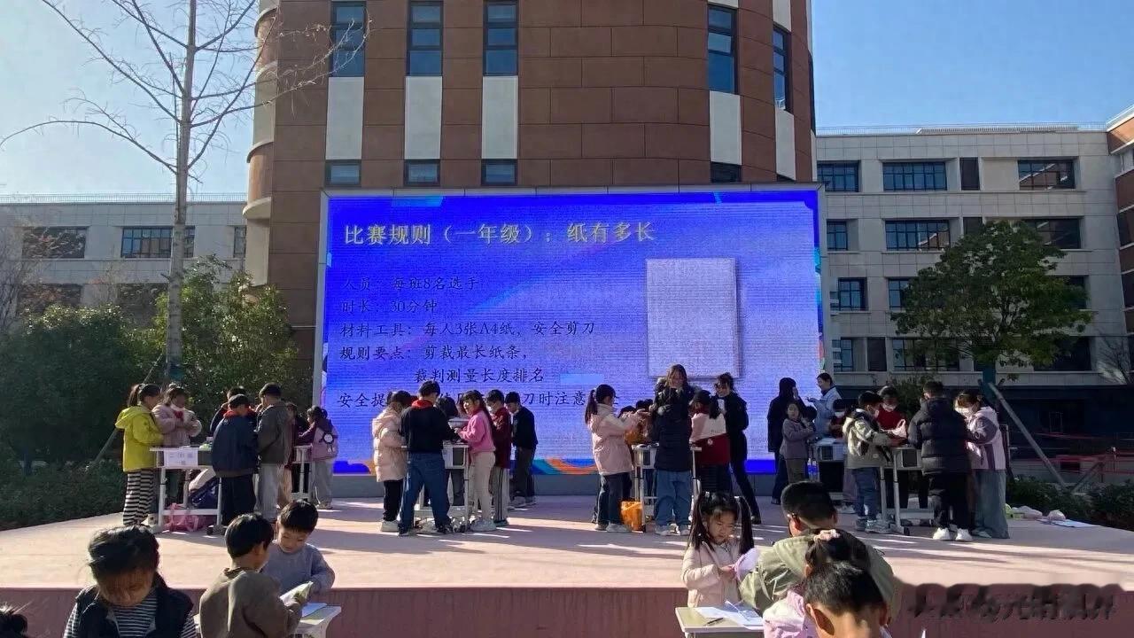 在一年级“纸有多长”比赛中,小选手们全神贯注,将普通A4纸巧手裁剪成连绵长条;二年级学生通过团队协作,用黏土塑出色彩绚丽的太阳系模型,展现了对宇宙的初步认知;三年级“萝卜塔比高”项目里,胡萝卜与牙签的组合考验着学生的结构设计与稳定思维;四年级“吸管建筑师”竞赛中,同学们化身“小小工程师”,用吸管搭建出形态各异、稳固高耸的塔架。