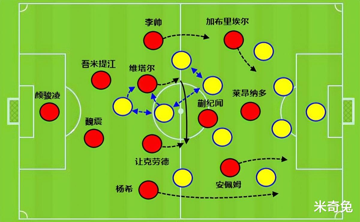 关键是另外一个外援中场的让克劳德,他只要是中长距离的向前传球,就全都是失误。这样一来,必须是蒯纪闻回撤中圈,结果蒯纪闻就开场15分钟回来,后面不回来了,于是上港进攻就断线了。