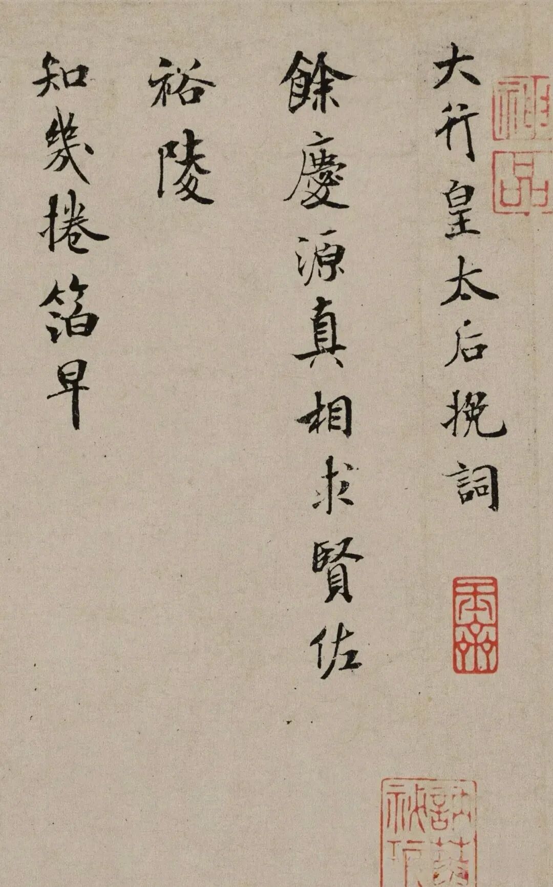 此帖是米芾五十一岁时为纪念宋神宗皇后向太后而书写的挽词作品。小楷书写,笔法精炼,此作为米芾得意之作,也是其传世小楷中的珍贵手迹。一向以癫狂姿态示人的米芾,在面对地位崇高的向太后之丧时,亦显露出肃穆之情。他以端庄流利的楷书,写下自作五律诗二首,以此表达对逝者的深切敬重。清亡后,《向太后挽词》最终归北京故宫博物院收藏。