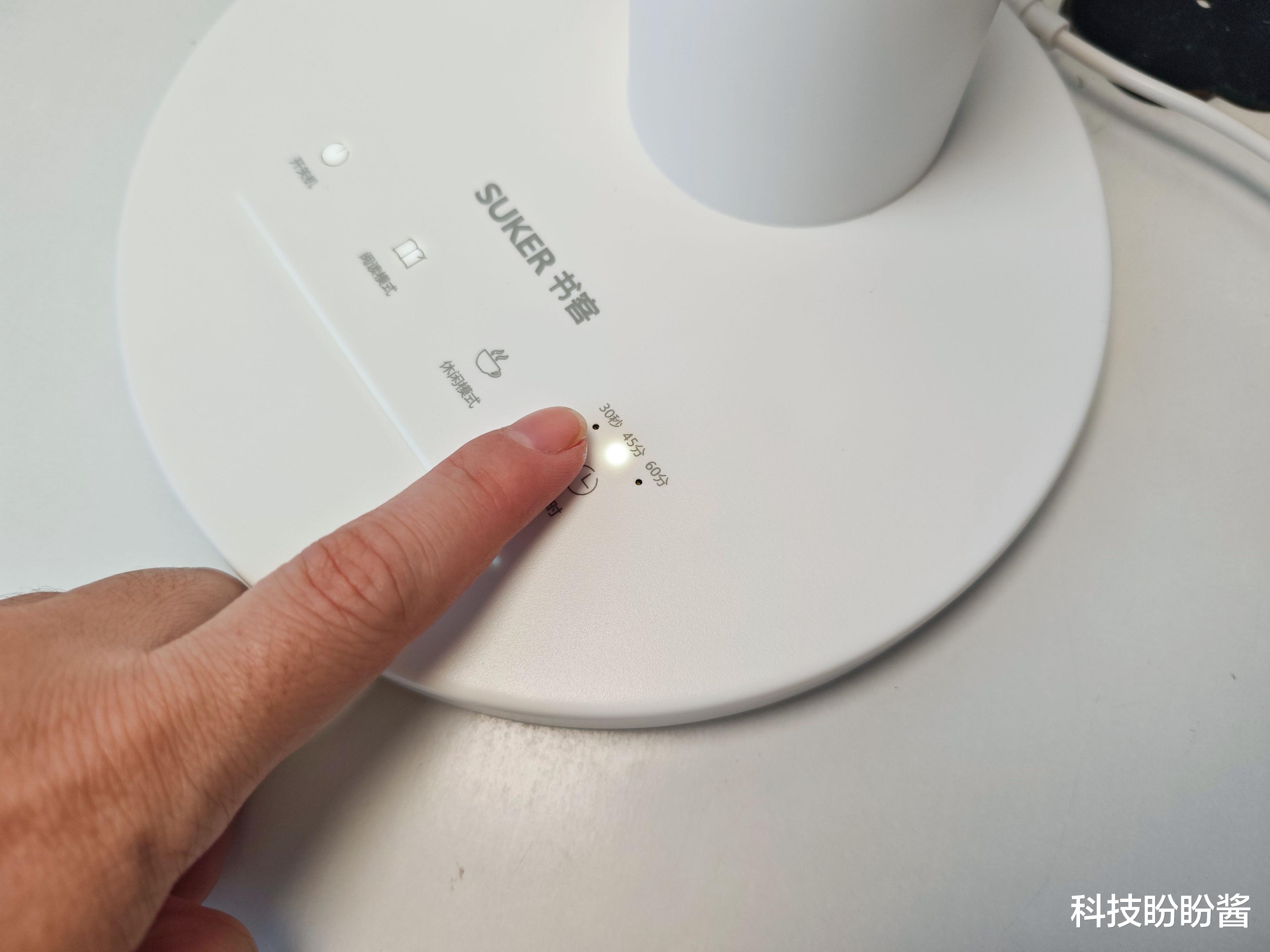 全触摸按键,触感灵敏。还支持定时功能,30分钟、45分钟、60分钟三档可选,定时功能很实用,适合孩子写作业,或者加班工作。我最喜欢45分钟档,和学校上课时间一样,到点台灯会轻轻闪一下提醒休息,能让娃慢慢养成定时休息的好习惯,比我唠叨管用多了。