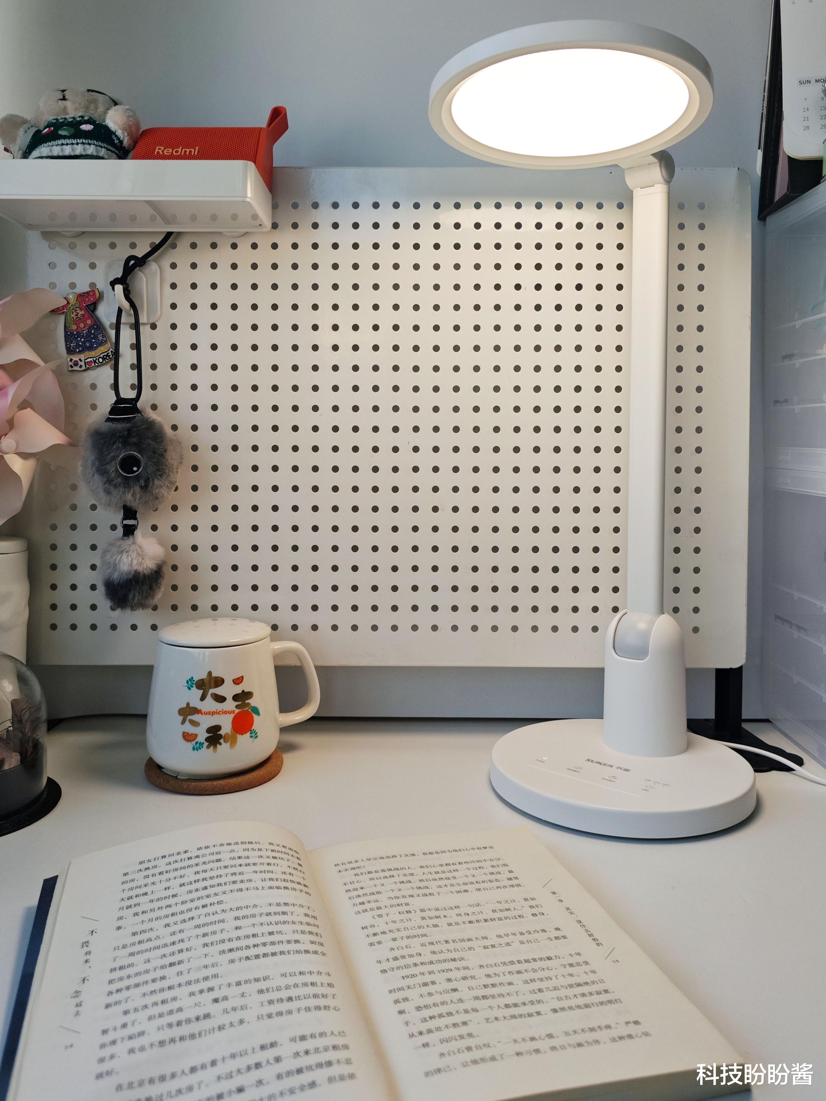 重点是光线,这才是护眼灯的核心啊!它用的第四代全光谱光源,说是99.6%还原太阳光,我一开始还不信,打开的瞬间真的惊了——整个桌面亮得特别均匀,不是那种刺眼的白光,而是像晴天上午的自然光,直视灯珠也不晃眼。之前用普通台灯,看半小时文件眼睛就发酸,现在加班两小时,眼睛还是松快的,后来查了才知道,它能有效抑制蓝光,这对经常对着屏幕的打工人太友好了 。