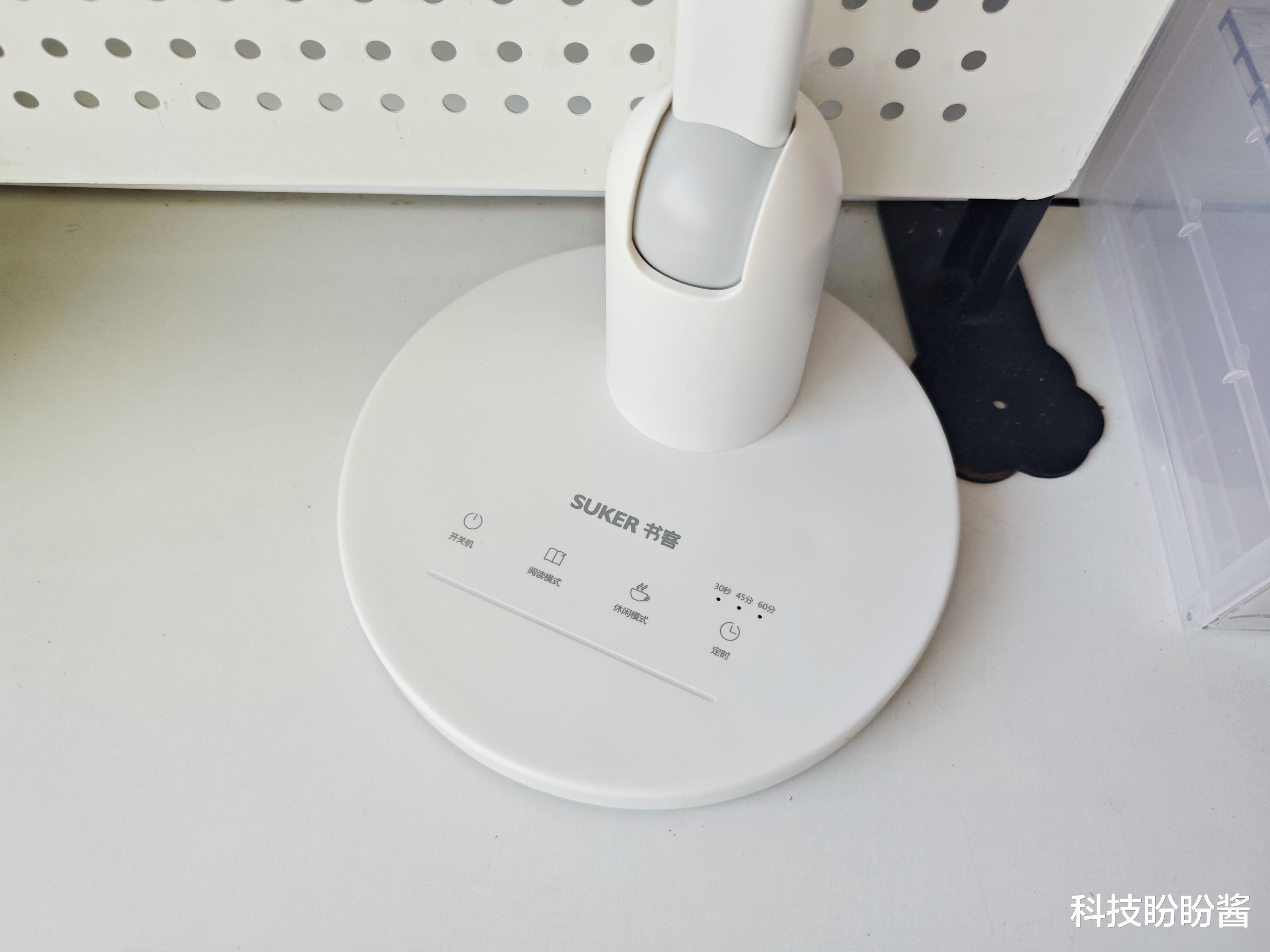 先说外观,就是那种简约款,白色机身配磨砂质感,摸着手感很扎实,底座稳重,结实耐用。放在书桌上不占地儿,和我家白色书桌也搭,不会像有些台灯花里胡哨的,看着就闹心 。