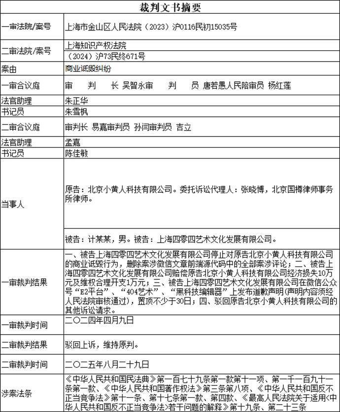 这起被称为“全国首例代码商业诋毁不正当竞争生效判决”的案件,因被告上海四零四艺术文化发展有限公司(以下简称“四零四公司”)迟迟未履行公开道歉义务,引发行业高度关注。