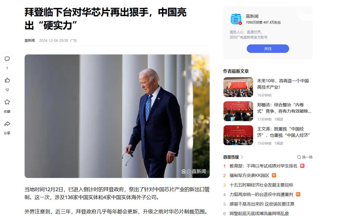 参考资料:拜登临下台对华芯片再出狠手,中国亮出“硬实力”