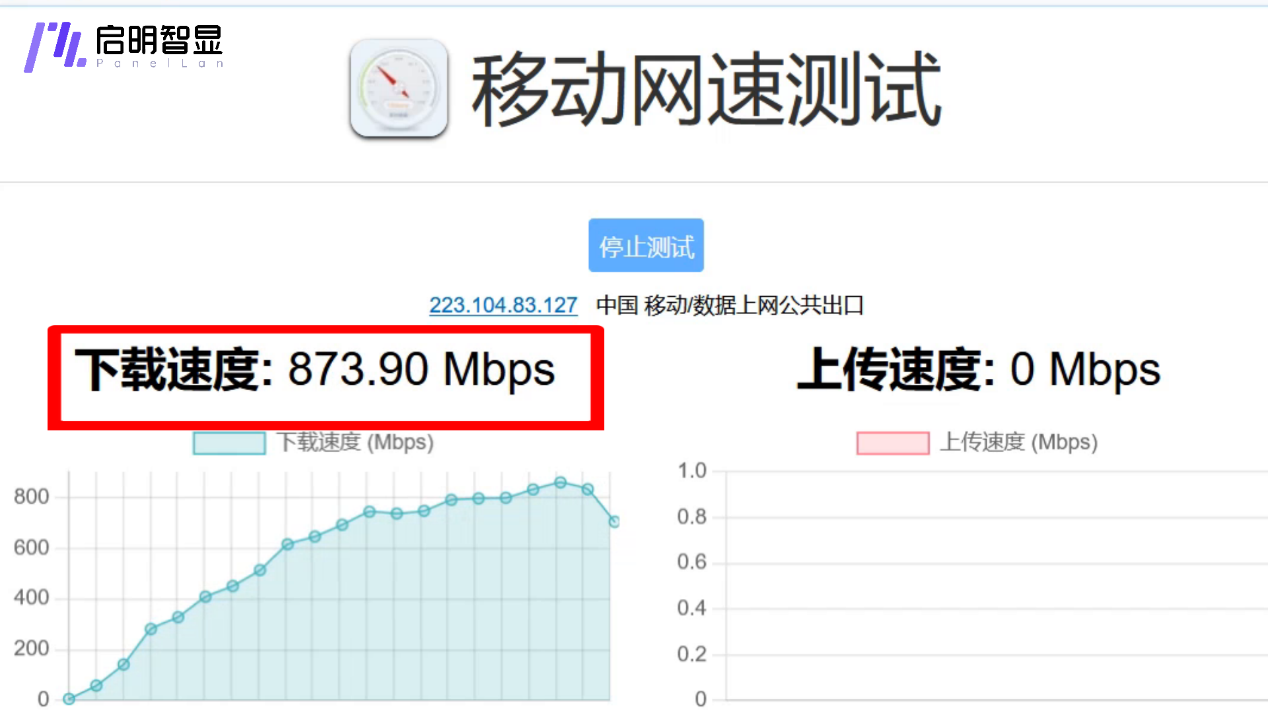 下行速度:峰值 [873.90] Mbps(均值稳定于 [834.77] Mbps)
