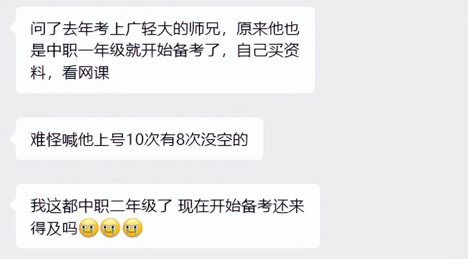 “我以为大家都要等到三年级才开始学,直到问了上届考上广轻的师兄,才知道他从一年级就没闲着。” 来自广州某中职的李同学说。通过与多位上岸师兄姐交流发现,原来,许多成功的师兄师姐,他们的备考之路远非从高三才开始。他们中的很多人,从中职一年级起,就已经在默默地规划未来。当大部分同学还沉浸在刚入校园的新鲜与放松中时,他们已经利用晚自习和周末时间,开始了语数英的网课学习,并配合教材进行系统性自学。