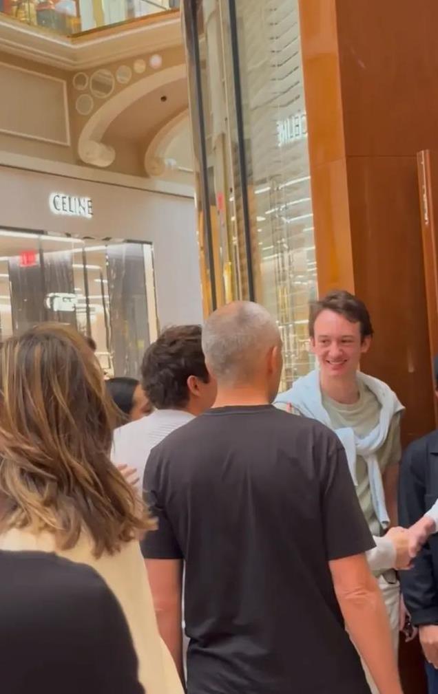 Lisa不是自己一个人去的拉斯维加斯的F1赛场,她是陪着LV三公子去的。LV三公子在赛前和法拉利的车手Leclerc见面了。LV 三公子把针织衫披在肩上,他这种老钱风的穿搭在人群里很醒目,一眼就看到他了。