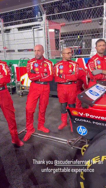 LV三公子之前赞助的是红牛车队,但这次的拉斯维加斯F1赛上,LV三公子赞助了法拉利车队,Lisa也去到了法拉利车队这边为他们加油鼓励。