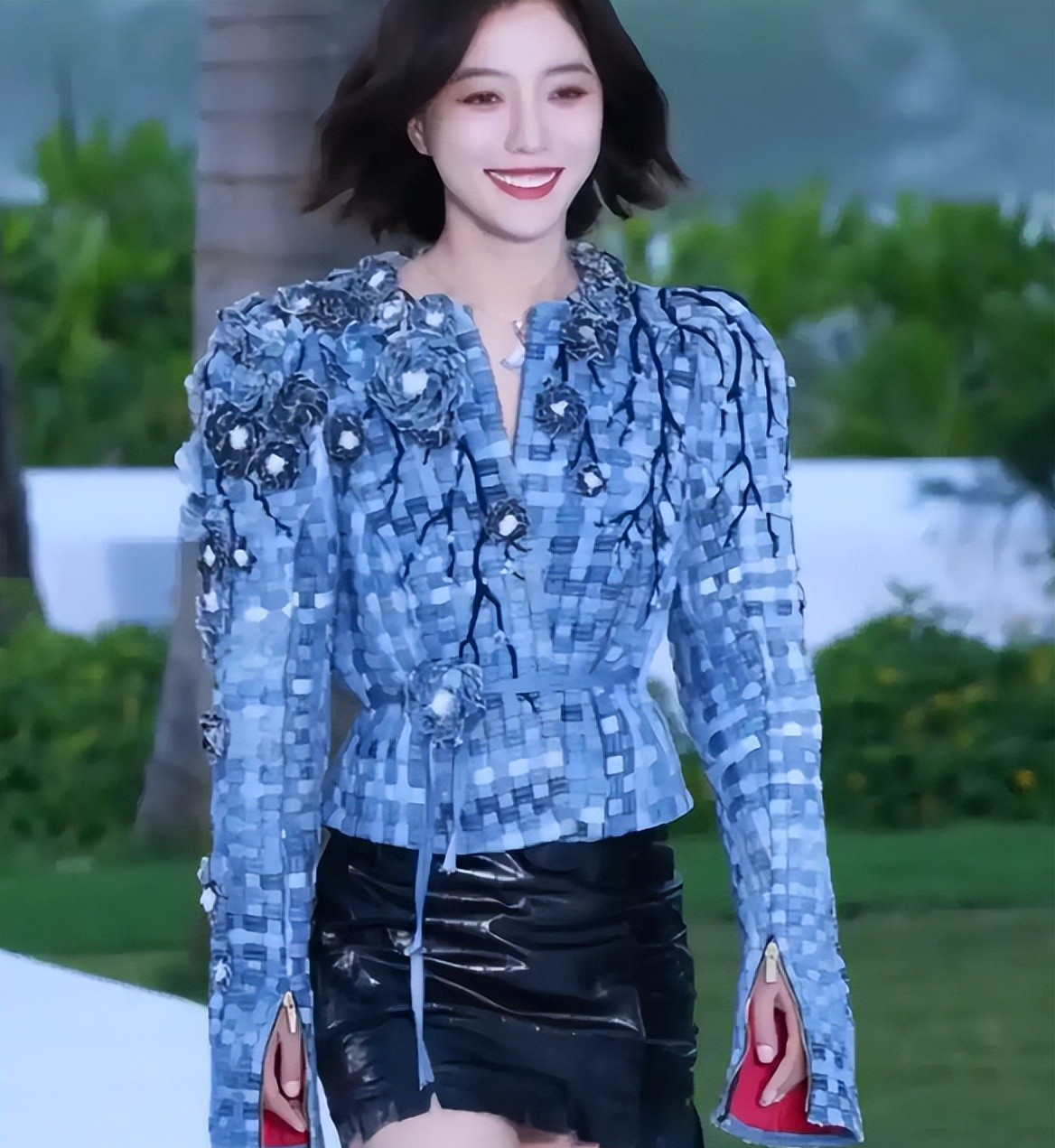 走秀的时候,王珞丹眼神无光,整张脸也因为妆容有点过,显得没有灵气,有种沉重感。