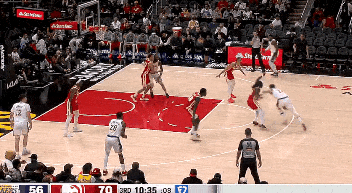 NBA常规赛,湖人对阵老鹰的比赛正在进行中。