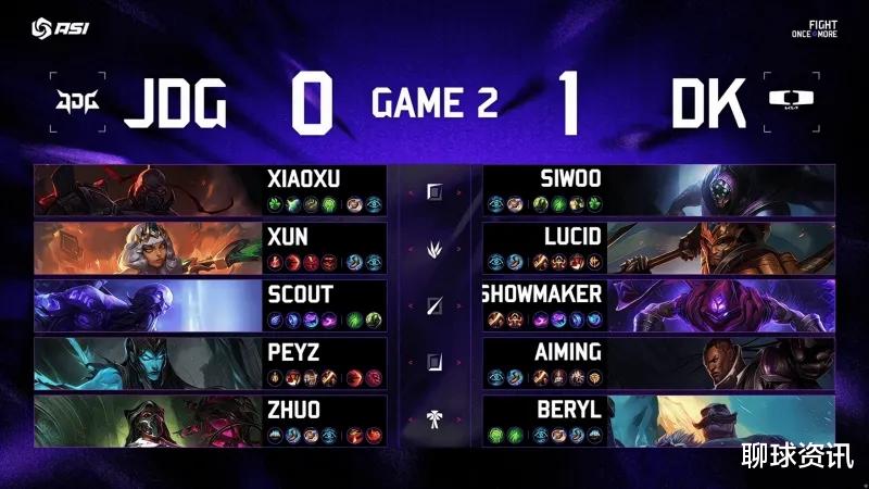 DK选用:Siwoo贾克斯、Lucid皇子、ShowMaker玛尔扎哈、Aiming卢锡安、BeryL布隆