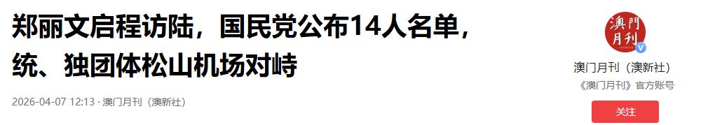 郑丽文最终顺利成行,也说明岛内希望和平、希望交流的力量还是占主流,“台独” 势力的倒行逆施,只会越来越不得人心,最终必然会被历史和民众抛弃。两岸同胞本来就是一家人,共同推动统一、共同维护民族尊严,才是正确的路,也是所有中华儿女的共同心愿。