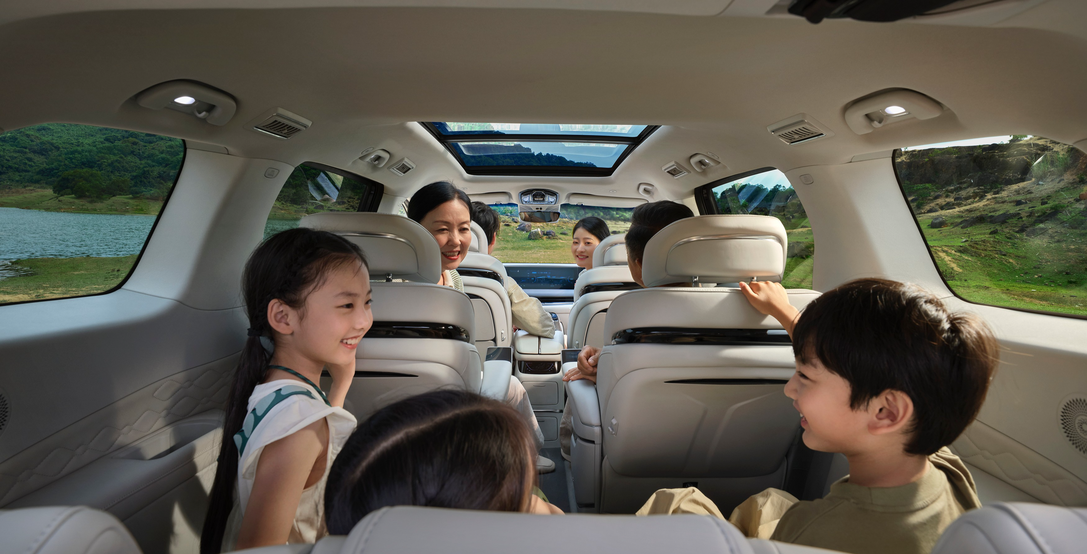 风行星海V9搭载的是混动高效发动机,能够提供稳定的动力,可以选择纯电、混动和增程三种动力,用户可以根据实际情况选择相应的动力。在日常通勤情况下,纯电驱动可以实现200km的续航里程,周末长途自驾游的时候,采用增程器提供动力,最高能达到1300km。