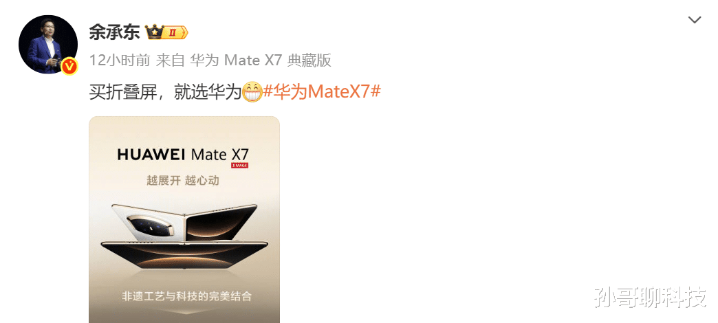 华为Mate X7发布以后,不少网友称其为“史上最强折叠屏”手机,安卓阵营没有对手,只能等苹果明年折叠屏亮相。恰巧iPhone折叠屏核心参数曝光,华为Mate X7能打得过苹果吗?其实余承东一句话就能暴露真相,华为没把对手放眼里。