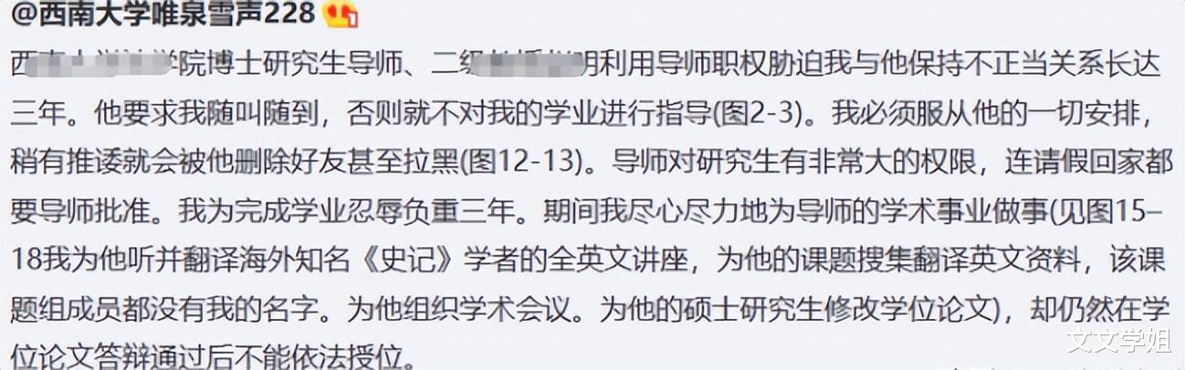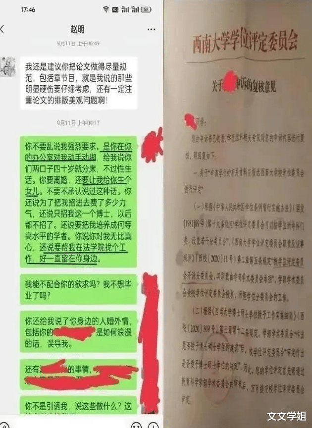 西南大学女博士研究生举报教授潜规则自己,大尺度聊天记录曝光