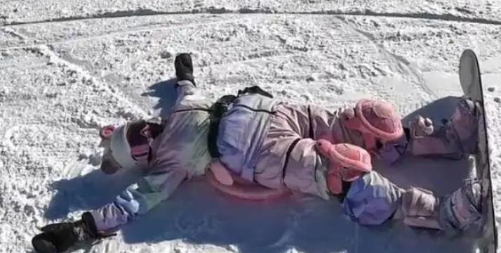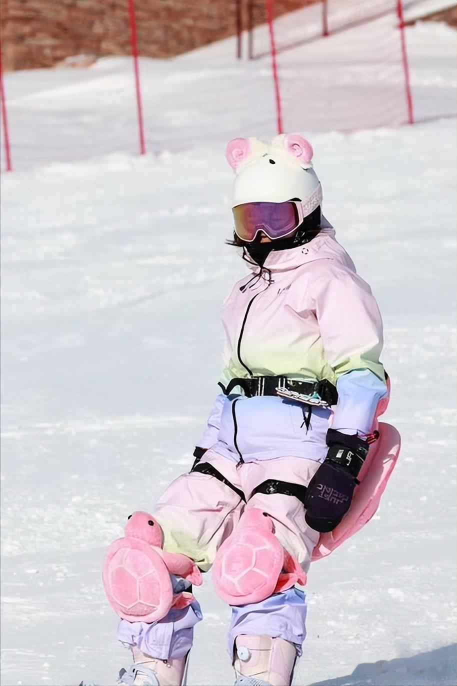 视频里的小姑娘穿着粉色滑雪服,膝盖和屁股上套着卡通乌龟造型的护具,摔了好几次都笑着爬起来,那股子孩子气的劲儿,和赛场上严肃专注的她完全是两个人。