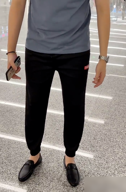 2025年主流男装设计强调“纵向延伸感”,而束腿裤的截断式裤脚,会把腿长从脚踝处“腰斩”。身高170cm的男性穿束腿裤配厚底鞋,脚踝与鞋帮的空隙像划了道“显矮分割线”,五五分身材直接变“压缩弹簧”。