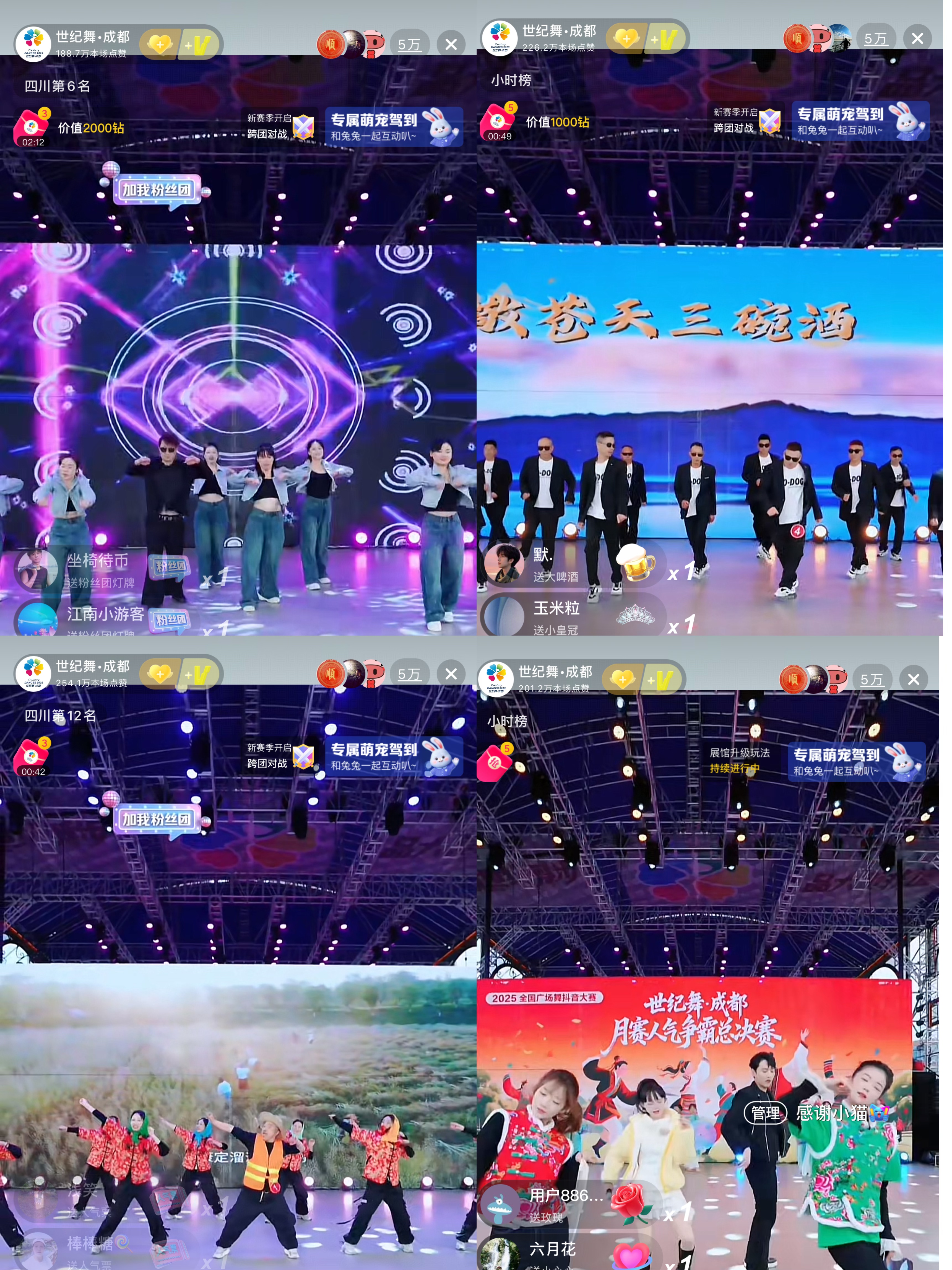 "世纪舞·成都全国广场舞抖音大赛"创下收视新纪录!通过"世纪舞·成都"官方抖音号观看直播的同时在线人数突破60000人大关,这一数据刷新了赛事开播以来的最高纪录,展现了这场全民舞蹈盛宴持续升温的热度。