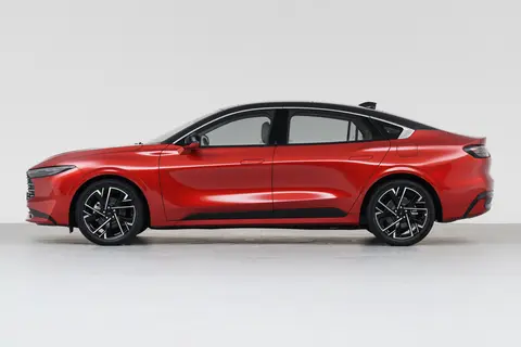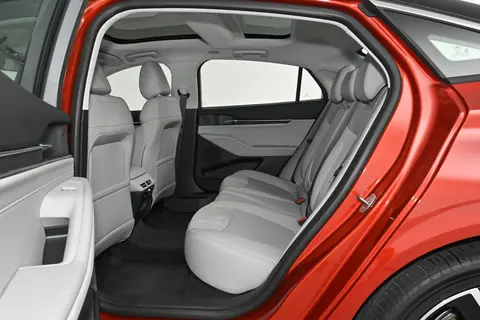 车身侧面的线条堪称点睛之笔,平稳流畅的腰线搭配侧裙处突出的筋线,让车身层次感十足。19英寸黑化轮毂搭配韩泰高性能轮胎,运动氛围直接拉满,而隐藏式门把手的设计更是惊喜——要知道这在燃油车中并不常见,不仅提升了高级感,还能有效降低风阻。溜背式车顶兼顾了美观与实用,没有因为造型牺牲头部空间,标配的全景天窗面积宽敞,还能隔绝紫外线,周末带家人出游时,后排乘客也能享受充足采光。