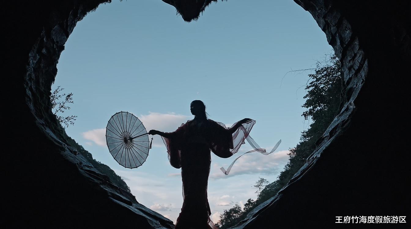 若想在心洞拍出惊艳的古风大片,穿搭和角度可是关键。身着一袭汉服或飘逸古风裙,站在拱洞下,让裙摆随山风轻轻扬起,竹影落在衣袂上,无需刻意摆姿势,只需抬头望山、低头抚水,或是侧身倾听溪流声,都能轻松捕捉到自然又灵动的瞬间。