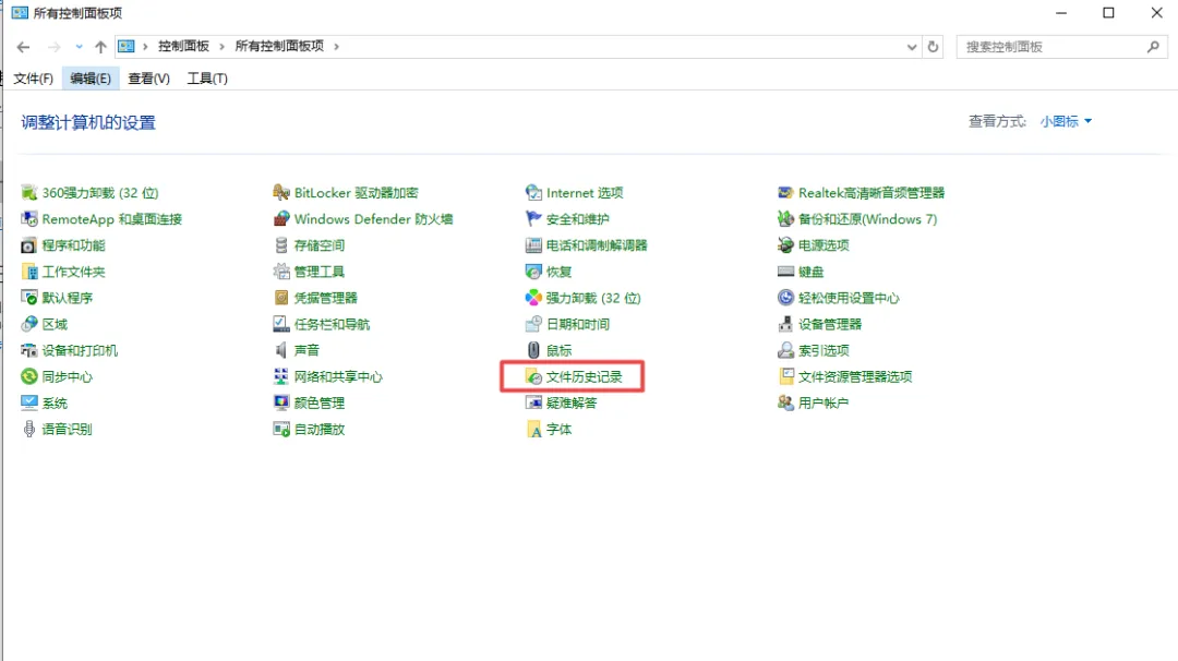 1、在任务栏的搜索框中,输入“通过文件历史记录还原你的文件”并打开它。