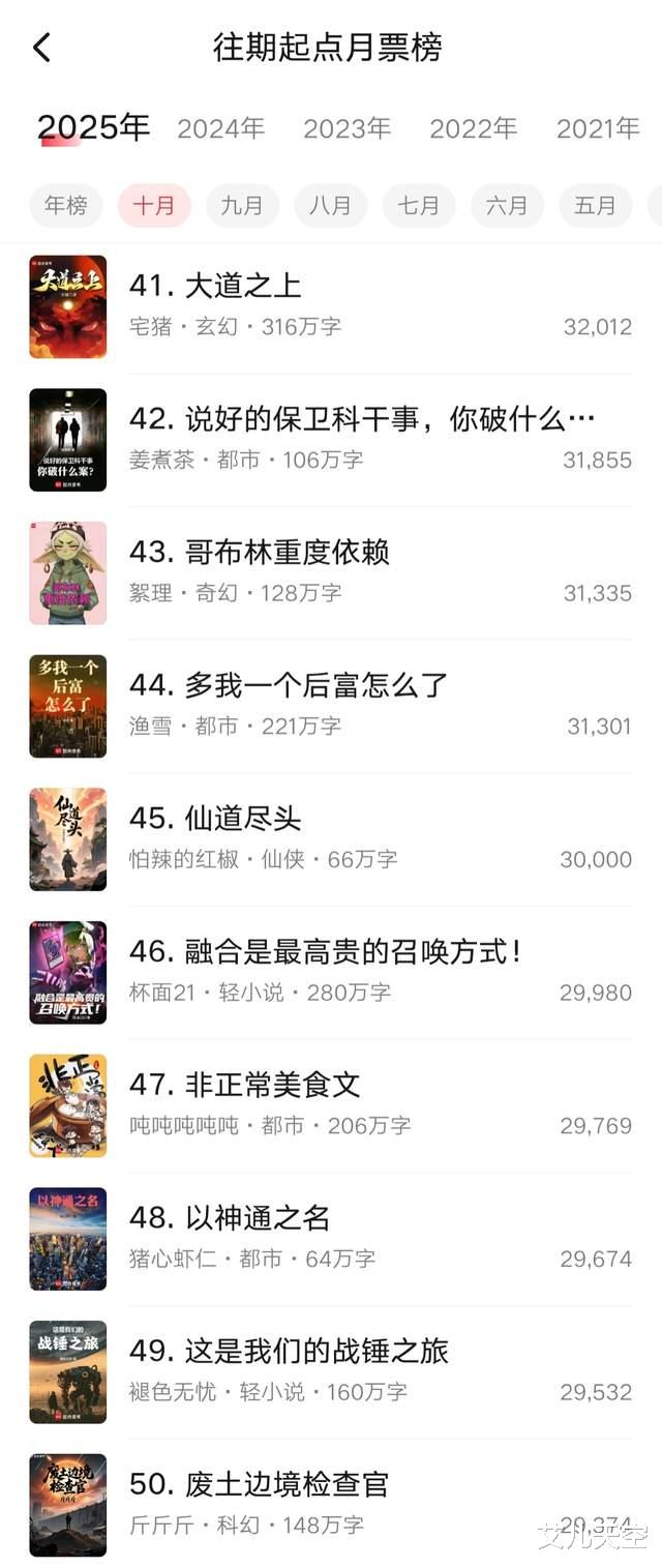 以上就是十月起点月票榜部分作品的最终排名情况了,只是简单记录一下。
