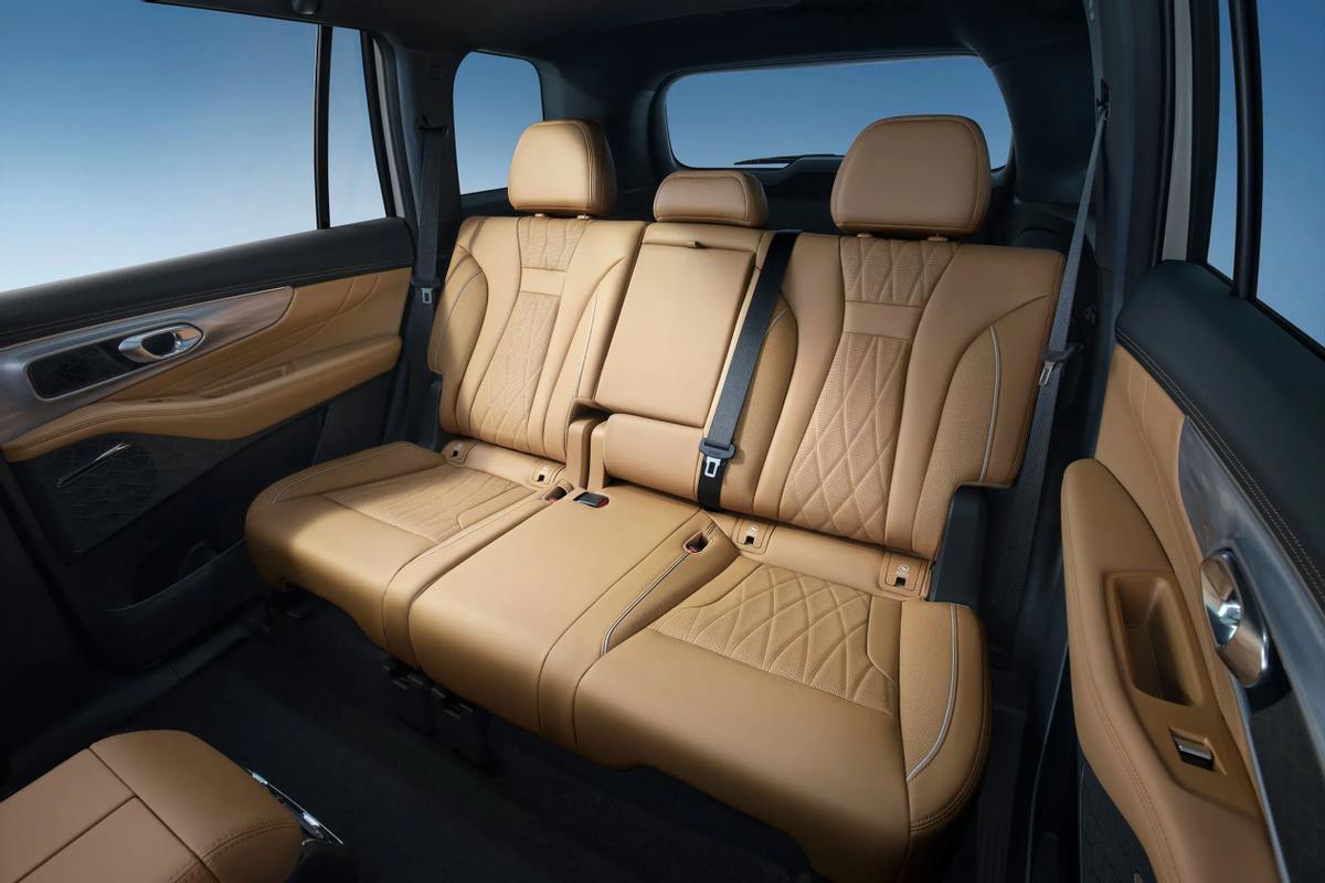 车身侧面腰线从前翼子板一直延伸到了后尾灯,提升了整车的运动姿态,车顶银色行李架采用了贴合式设计,第2排和第3排车窗均使用了隐私玻璃,D柱则采用了黑色装饰,营造出了悬浮式车顶效果,外后视镜集成了转向灯功能,360度全景影像在停车时能提供很大的帮助,前后轮胎规格均为255/50R20,品牌为米其林,车尾的设计简洁又方正,双边共两出的排气采用了隐藏式设计。