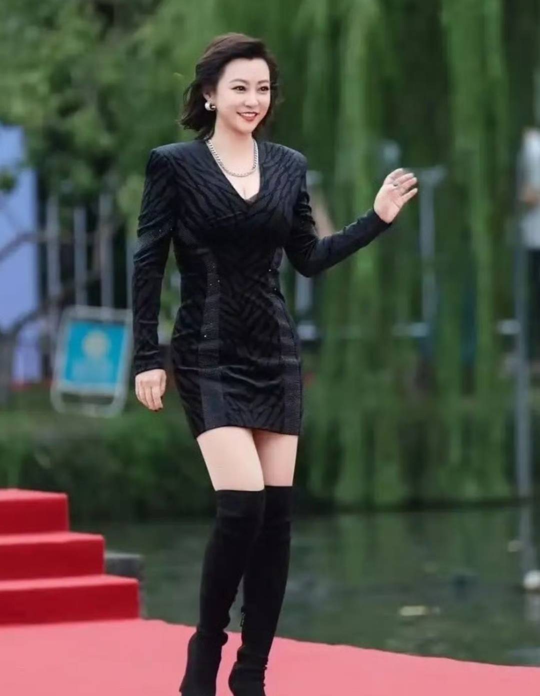 9月20日,浙江国际青年电影周的红毯上,郝蕾以一身V领短裙搭配长靴的造型惊艳亮相。与冯绍峰同台担任光影大使的她,踩着十厘米高跟鞋稳步向前,1米77的挺拔身姿尽显优雅气质。