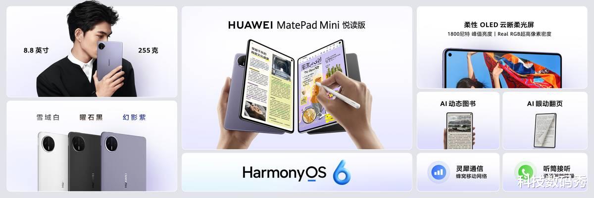 华为MatePad Mini 悦读版的产品逻辑,始终围绕“随行”二字展开——8.8英寸机身、255g重量、5.1mm厚度,并支持独立通信,可插卡使用,随时随地接打电话与上网。鸿蒙操作系统6的加入,则让它在轻便之外,获得了一套更为完整的信息处理能力。