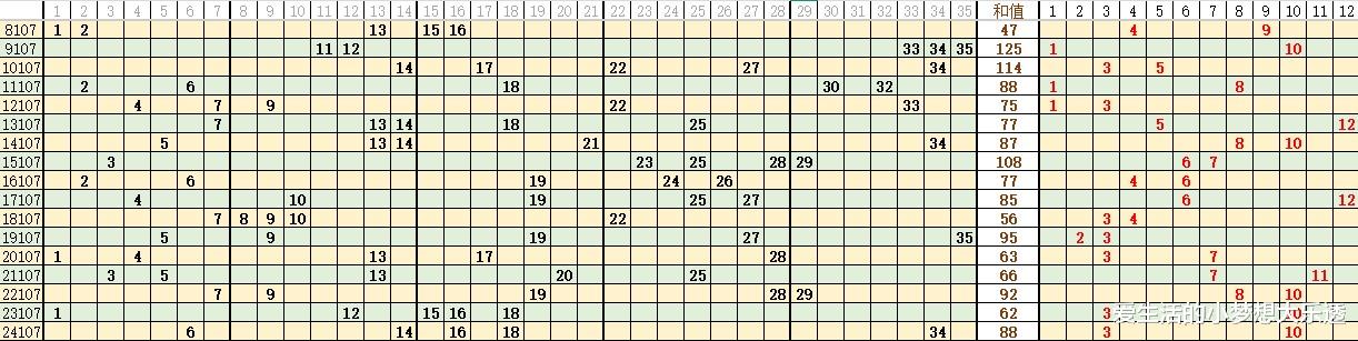 34作为凤尾出现各3次,25 27 29 34 35作为凤尾出现各2次,16 18 22 26 28 32 33作为凤尾出现各 1 次。凤尾开出0路3次,1路8次,2路6次。三路凤尾开出0路开出最少,1和2路相差不大。0路开出3次凤尾,其中18 27 33各开出1次。1路开出8次凤尾,其中34开出3次是热码凤尾,25开出2次,最小凤尾16 和22 28各开出1次。2路开出6次凤尾,其中29和35各开出2次,26 32各开出1次。