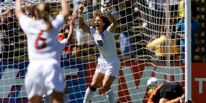 即便转型,她的进攻天赋仍没丢:为美国女足出战 156 场轰 105 球,1991 年单年就进 39 球;更夸张的是 1991 年世界杯,她单届轰 10 球,至今保持 “女足世界杯单届进球纪录”,还助美国拿队史首座世界杯冠军。