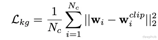 其中引入的知识引导损失 (Lkg),定义为微调后的嵌入 w i 与 CLIP 锚点 (w i^clip) 之间的均方欧几里得距离: