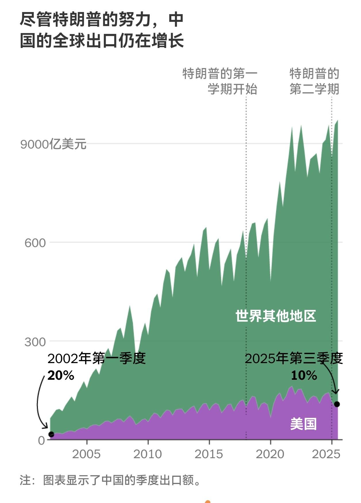 但世界其他地区正在弥补这一差距,从中国购买的商品比以往任何时候都多。