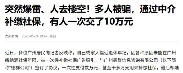 大风新闻2025-05-24 ——突然爆雷、人去楼空!多人被骗,通过中介补缴社保,有人一次交了10万元