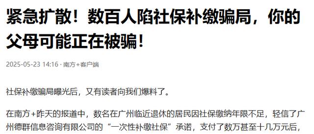 南方+客户端2025-05-23——紧急扩散!数百人陷社保补缴骗局,你的父母可能正在被骗!