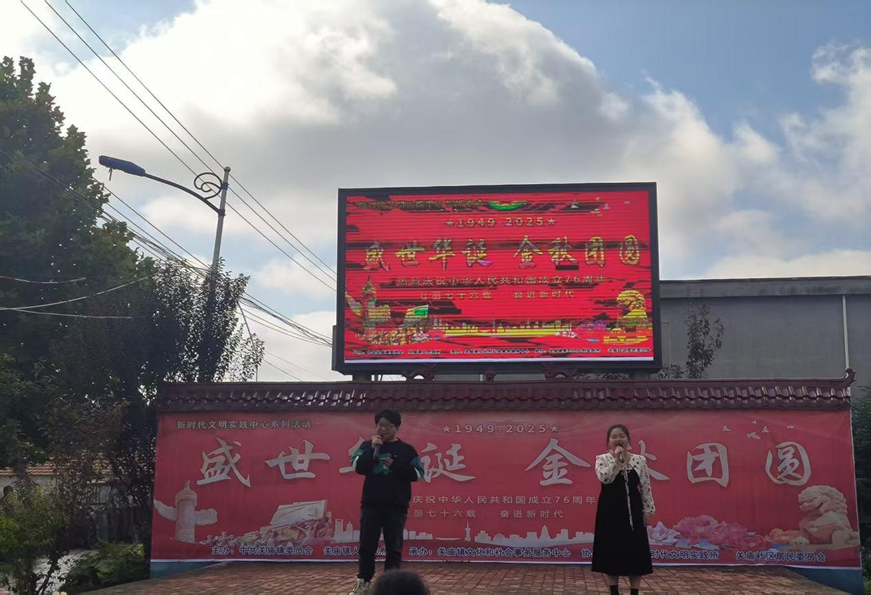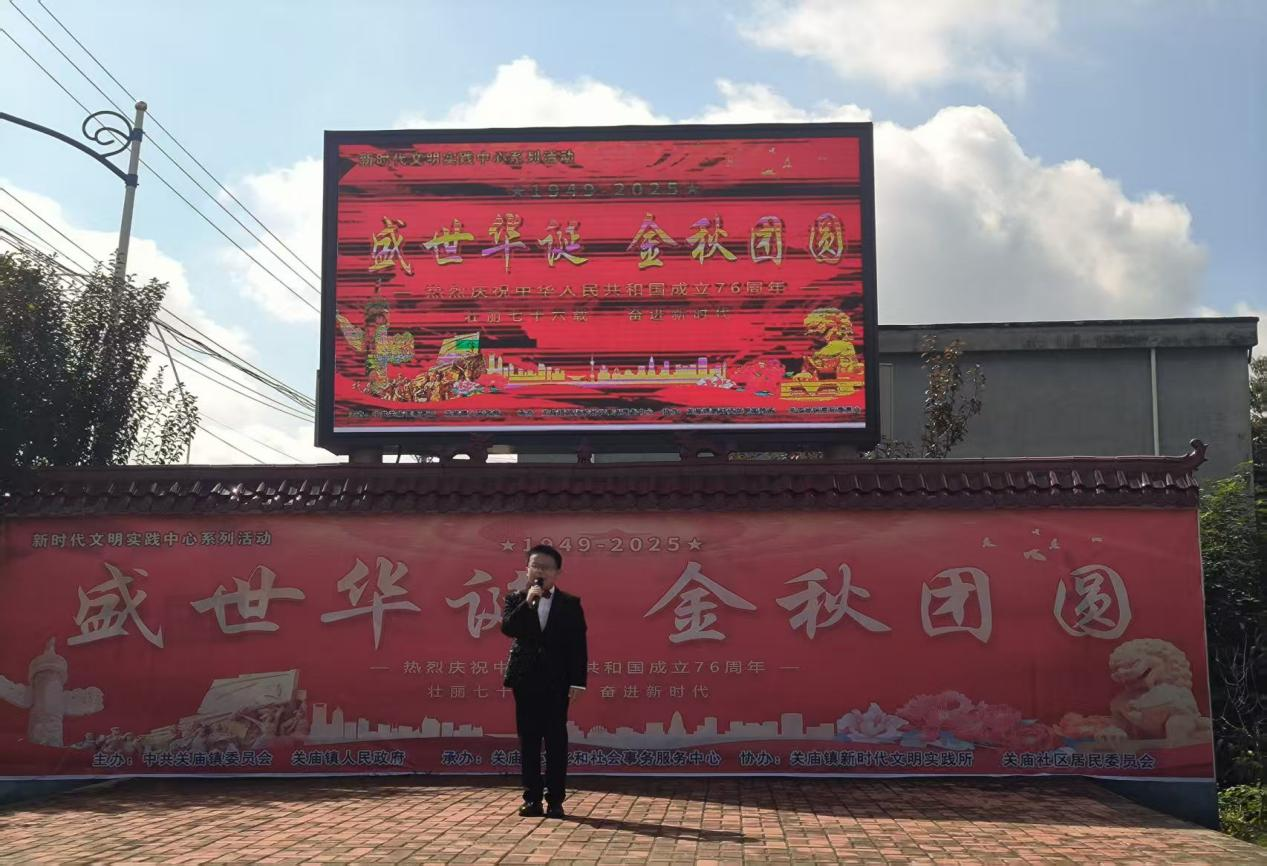 在中华人民共和国成立76周年华诞与中秋佳节来临之际,为大力弘扬爱国主义精神,传承中华优秀传统文化,丰富群众精神文化生活,9月30日,临泉县关庙镇在关庙社区文化广场隆重举行了“盛世华诞 金秋团圆”新时代文明实践活动。活动现场欢声笑语,气氛热烈,洋溢着一派喜庆祥和的节日氛围。