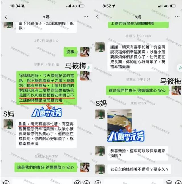 甚至在大S离世后,汪的大婚之日,她还在发消息给新娘子,让他们拿钱去换汪的豪车。