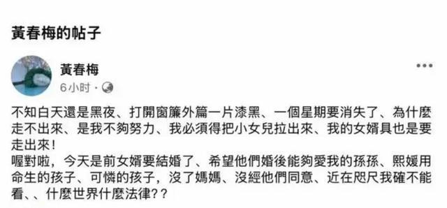 “孩子好久没见外婆了,大S走了之后我更得疼他们,你一个人忙事业哪顾得过来?让我照顾几天也是应该的。”