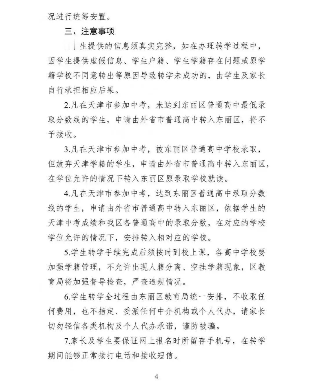 东丽区教育局关于做好2025级具有东丽区户籍在外省市普通高中就读学生转学安置工作的通知